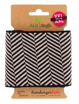 Albstoffe Bande bord-côte en coton bio "Cuff Me Icon Glow", noir/blanc délavé, 1,4 m