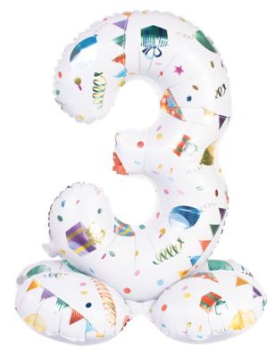 Ballon en forme de chiffre "3" tenant debout – que ce soit pour un anniversaire, un jubilé ou le nouvel an, ces ballons blancs à motif d'anniversaire sont toujours appréciés !