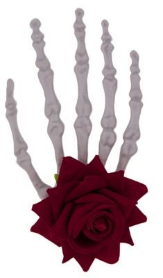 Barrette "main squelettique" : élégante mais avec un effet choc, cette main de squelette ornée d'une rose rouge sang ne passera pas inaperçue !