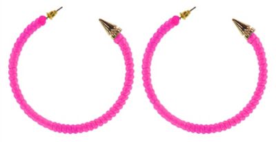 - particularités : grandes créoles en couleur fluo, aspect cordelette, rivets dorés