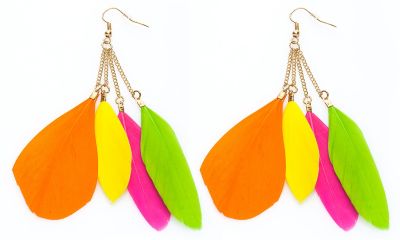 Boucles d'oreilles "plumes" – pimentez votre déguisement de hippie ou de clown par une touche finale, multicolore et fluorescente !