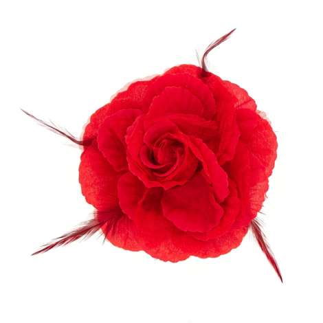 Broche/barette Rose en tissu – cette rose se porte aussi bien comme broche ou bien comme barette à cheveux. Elle s'adapte à de nombreux déguisements comme par exemple un déguisement d'espagnole, de clown ou de danseuse de hula.