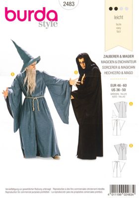 burda Patron 2483 "magicien", avec des explications pour 2 modèles (et chapeau), taille : 48 - 62, niveau de difficulté : facile, tissu recommandé : tissu laine, lin, tissu coton, imitation cuir, chapeau : feutrine.
