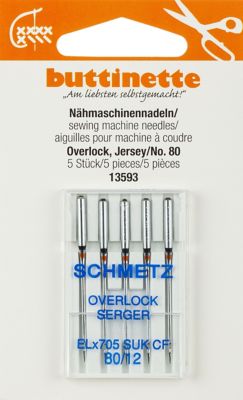 buttinette Aiguilles pour surjeteuse "jersey", avec pointe à boule, pour des surjeteuses du type ELX 705, à talon plat, épaisseur : 80, contenu : 5 pièces.