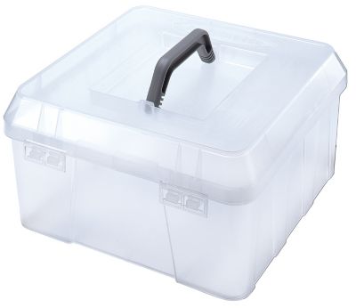buttinette Boîte de rangement en plastique, empilable, dotée d'une poignée de transport, transparente, dim. : 31 x 31 x 17 cm, sans contenu.
