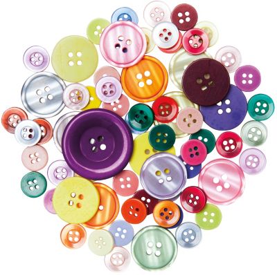buttinette Boutons standard "multicolore". Ce set éco contient des boutons standard en plastique et en différentes couleurs. Idéals pour des vêtements, coussins, sacs, etc. Dim. : 1–3 cm Ø. Contenu : 150 g = env. 470 pièces, selon disponibilité.