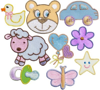 buttinette Écussons "bébé", à coudre ou à repasser, dim. : 3,5 - 7 cm, contenu : 9 pièces.