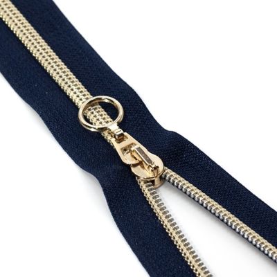 buttinette Fermeture éclair, non séparable, couleur : bleu foncé et or blanc, dim. glissière : 5mm, dim. ruban : 25 mm, longueur : 25 cm.