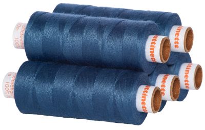 buttinette Fil à coudre universel, couleur : bleu jeans, grosseur du fil : 100, épaisseur d’aiguille conseillée : 60-100, contenu : 5 bobines, 500 m par bobine. Composition : 100 % polyester.