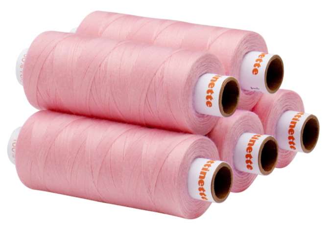 buttinette Fil à coudre universel, couleur : vieux rose, grosseur du fil : 100, épaisseur d’aiguille conseillée : 60-100, contenu : 5 bobines, 500 m par bobine. Composition : 100 % polyester.