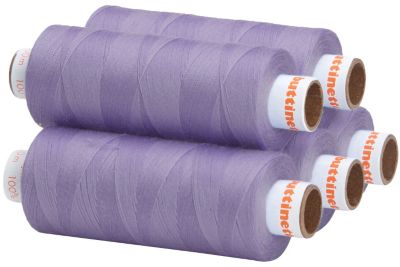 buttinette Lot de 5 bobines de fil à coudre universel, lilas, grosseur : 100, épaisseur d'aiguille conseillée : 60 - 100, contenu : 5 bobines, 500 m par bobine.