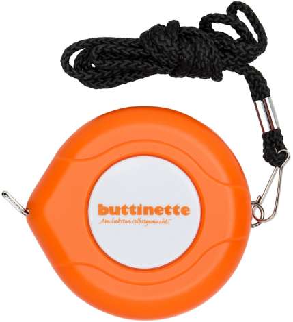 Le mètre-ruban de buttinette est tout simplement pratique : En cas de besoin, il sort de son boîtier rond et une fois le travail terminé, il disparaît par simple pression sur un bouton. Plus besoin d'enrouler péniblement le mètre à la main ! Le mètre-ruban est imprimé des deux côtés (en pouces et en centimètres) et possède un cordon à porter autour du cou, qui peut également être enlevé.