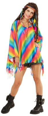 buttinette Poncho "rainbow" : coloré comme l'arc-en-ciel ! Ce poncho s'utilise pour de nombreuses soirées à thème ! Bandeau pour cheveux assorti inclus !