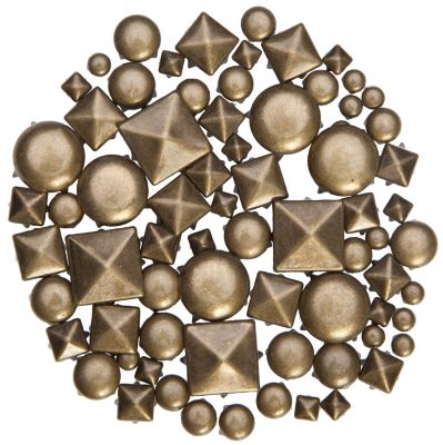 buttinette Rivets décoratifs, laiton vieilli, carrés et ronds, pour décorer des vêtements et accessoires, dim. : 4 - 12 mm, contenu : 200 pièces.