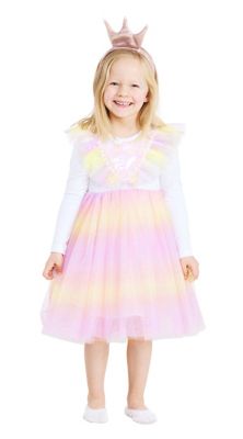 - détails : jupon intégré, serre-tête avec couronne en tissu