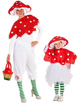 Cape "amanite tue-mouches" pour enfants et adultes, en imitation fourrure à poils courts avec des pois blancs collés, avec fermeture scratch, longueur : 26 - 32 cm.