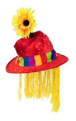 Vous souhaitez faire partie de l'équipe du carnaval cette année ? Ne vous gênez pas ! Avec ce drôle de chapeau de clown, ce n'est pas un problème ! Créez une tenue multicolore à partir de ce chapeau tournesol avec seulement quelques accessoires supplémentaires ; les cheveux en laine jaune et les paillettes rendront votre look très particulier ! Réjouissez-vous, car en tant que clown, boute-en-train ou arlequin fou, vous allez certainement vous démarquer de la foule et récolter de nombreux compliments !