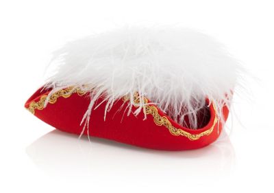 Chapeau tricorne avec plume d'autruches, rouge/blanc