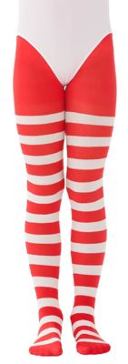 Collants rayés opaques pour enfants, rouge/blanc