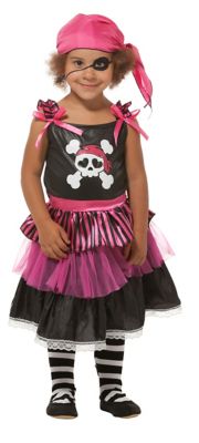 Costume "pirate" pour enfants, rose vif/noir, en tissu satin, tissu tulle et tissu jersey extensible.