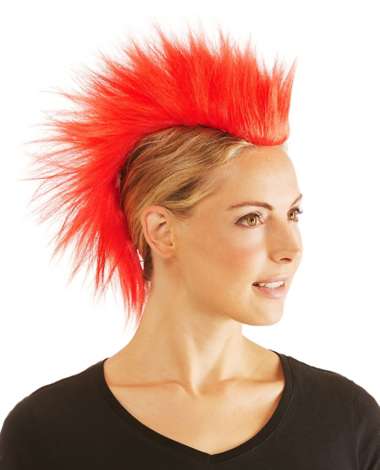Crête de punk, rouge, l'accessoire parfait pour compléter votre déguisement de punk. La crête est fixée à l'aide d'une pince à cheveux. A partir d'une longueur de cheveux minimum d'env. 1 cm.
