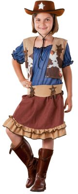 Déguisement "cowgirl" pour enfants, marron/beige/gris, en tissu velouté aspect daim et tissu jersey extensible.