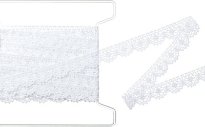 Dentelle aux fuseaux "arc", couleur : blanc, largeur : 1,7 cm, longueur : 5 m. Composition : 100 % coton.