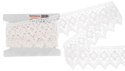 Galon de dentelle aux fuseaux "fleur", blanc, largeur : 7,5 cm, longueur : 5 m