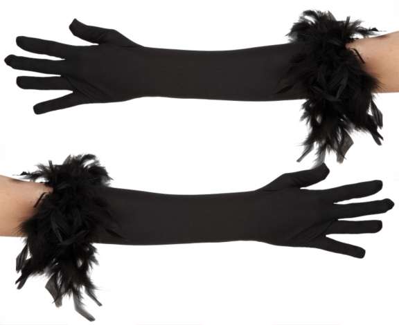 Gants longs "glamour" – back to the twenties ! Ces gants, en jersey et avec plumes, sont parfaits pour une robe charleston.