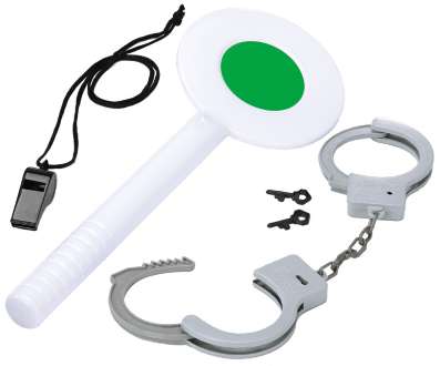 - contenu : menottes avec clefs, sifflet et disque de signalisation