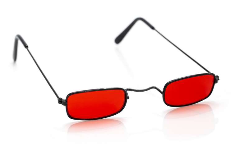 - particularités : verres étroits rouges, monture noire