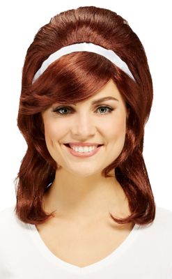 Perruque "années 50". Faites un voyage dans les années 50 avec cette perruque à cheveux longs crêpés. Le petit bandeau blanc ne doit pas manquer et est déjà intégré.