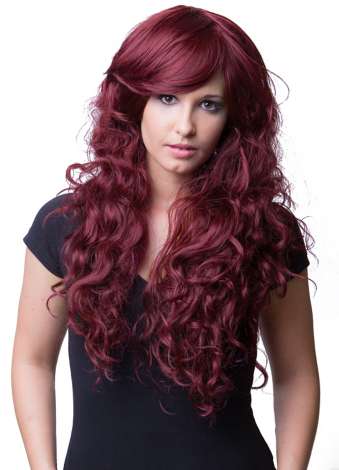 Perruque cheveux longs "volume", résistante à la chaleur, bordeaux