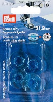 Prym Canettes pour boîtier double, convient aux machines à coudre de Pfaff et autres avec la forme typique de capsule, canette en plastique, transparent, dimensions : Ø 21,9 mm, hauteur : 9 mm, contenu : lot de 4 pièces.