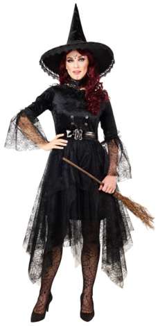 Que ce soit pour Halloween ou le carnaval, une odeur de soufre flotte dans l'air. Que se cache donc dans le chaudron ? Mélangez-vous avec les autres sorcières dans votre nouvelle robe de sorcière et découvrez-le ! Mais rapidement, vous réaliserez que ce ne sont pas les ingrédients qui importent, mais vous, dans votre superbe déguisement de sorcière avec son motif toile d’araignée ! Les autres sorcières seront certainement jalouses de votre robe et de votre silhouette, qui est mise en valeur grâce à la ceinture à la taille !