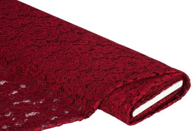 Tissu dentelle de qualité supérieure "Amélie", couleur : bordeaux, parfait pour des tenues de soirée, hauts, t-shirts, empiècements et bien plus encore, largeur : 145 cm, poids : env. 160 g/m². Composition : 100 % polyester.