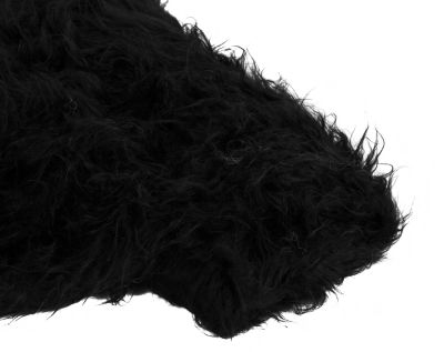 Tissu imitation fourrure à poils long, couleur : noir, avec envers lisse, hauteur du poil : 40 mm, largeur : 150 cm, poids : env. 435 g/m². Composition : 80 % polyacrylique, 20 % polyester.