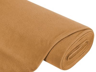 Tissu polaire moelleux à effet anti-boulochage, couleur : camel, largeur : 150 cm, poids : env. 280 g/m². Composition : 100 % polyester.