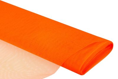 Tissu tulle, orange, tissu filet de qualité légère pour créer de beaux effets. Il n'est pas nécessaire d´ourler ce tissu, idéal pour des décorations, des jupons, le carnaval, etc., avec qualité ignifuge.