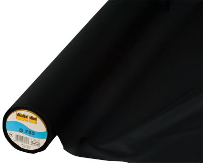 Vlieseline ® G 785, entoilage de renfort, couleur : noir, thermocollant d'un côté, épaisseur : 0,2 mm, largeur : 90 cm, poids : env. 30 g/m². Composition : 100 % polyester.